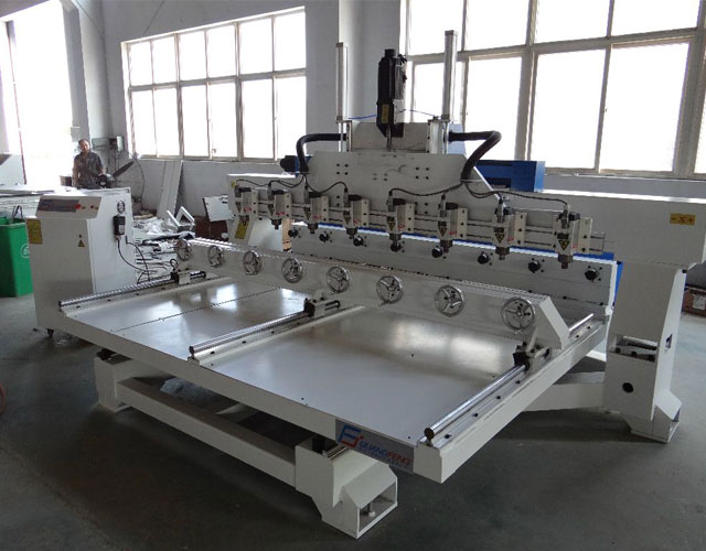 4、每臺數控木工雕刻機標配有一個10刀位的可兼容性刀庫,此刀庫由新代數控系統9401或LNC-520H控制。